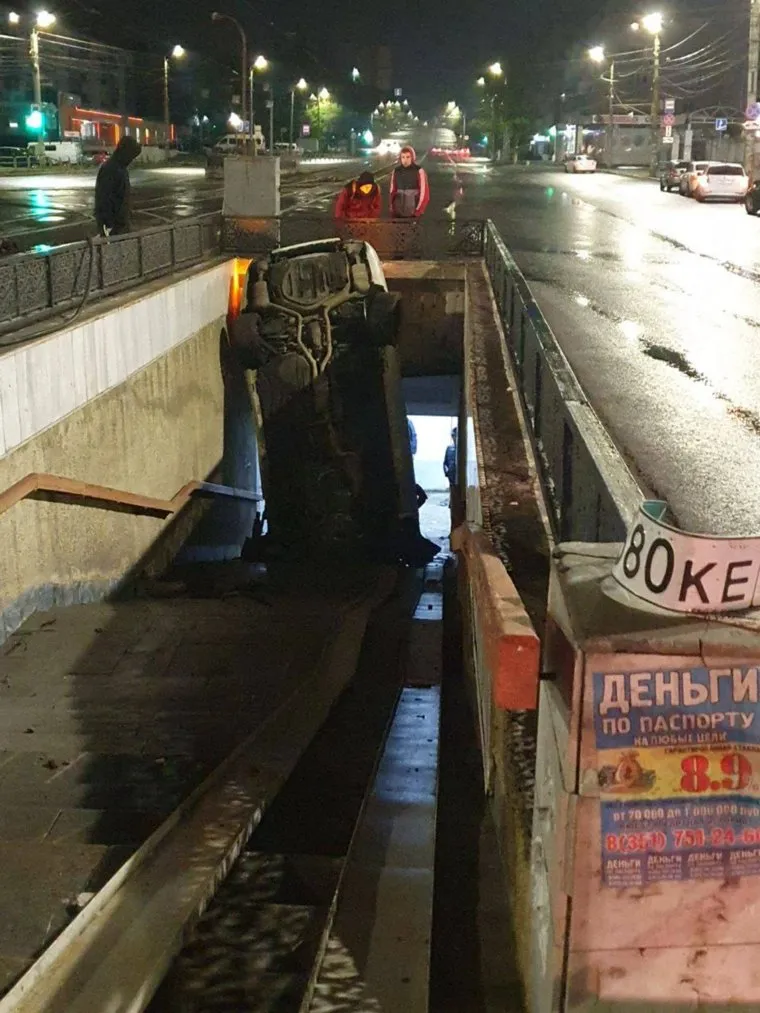 По данным ГИБДД, 25-летний водитель иномарки наехал на металлическое ограждение, после чего автомобиль перевернулся и улетел в подземный переход. В результате аварии пострадали водитель и два его пассажира. По факту ДТП ведется проверка. Устанавливаются все обстоятельства аварии.