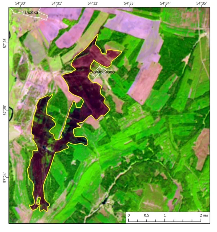 Спутниковый снимок показывает последствия самого крупного из весенних ландшафтных пожаров, произошедшего в Большесосновском округе Пермского края