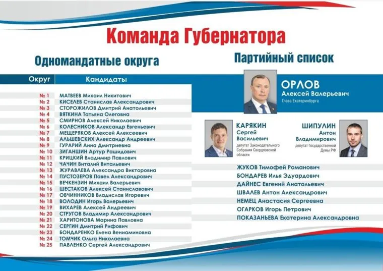 В остальном, утверждает знакомый с ситуацией источник, якобы ничего на данный момент не поменялось. По итогам праймериз, общегородской список ЕР на основных выборах должны будут возглавить мэр Алексей Орлов, депутат Госдумы Антон Шипулин и депутат заксо Сергей Карякин. Они от мандатов откажутся. На проходных четвертом, пятом, шестом и седьмом местах —депутат думы Тимофей Жуков (антимэрская фракция миллиардера Виталия Кочеткова) топ-менеджер УГМК Илья Бондарев, замдиректора медколледжа Евгений Дайнес (креатура Куйвашева) и депутат думы Антон Швалев (фракция Кочеткова).