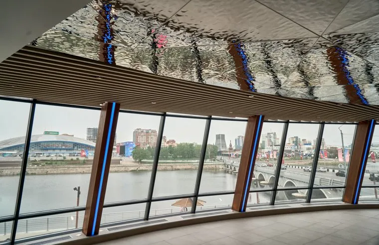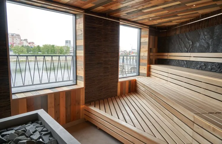 Объект на площади почти в четыре тысячи кв метров займет три этажа. Под открытым небом на крыше разместился бассейн с панорамным обзором на набережную. Здесь же построили детский бассейн, бар, кафе, пляж, четыре бани различной тематики и «иглу» — домики для дружеских посиделок и праздников.