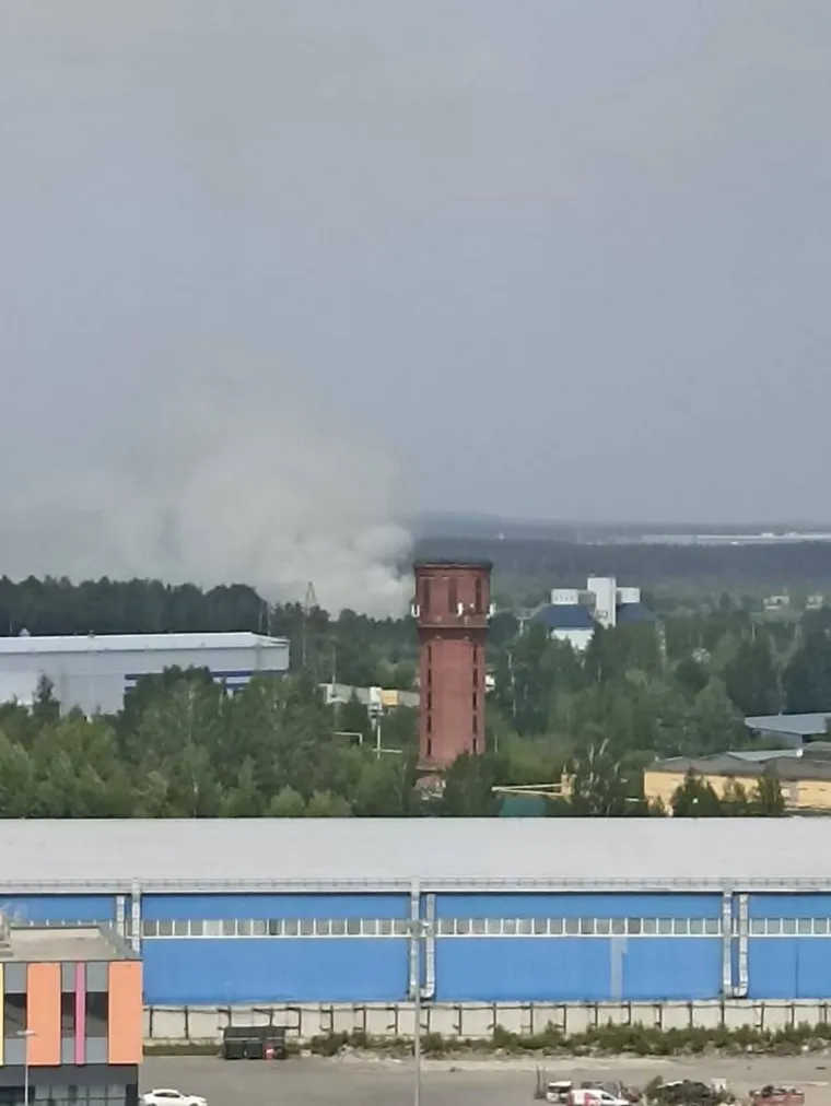 Пожарные тушат возгорание сухой травы в районе Эльмаша в Екатеринбурге