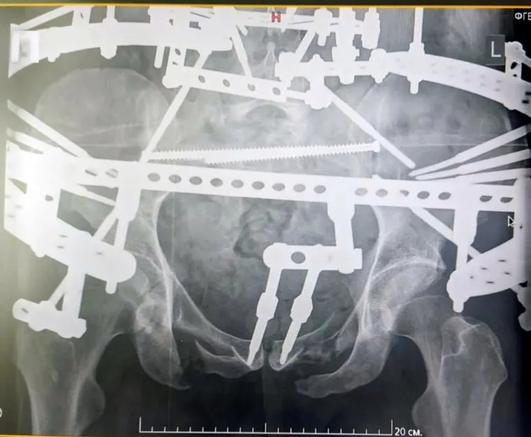 «Экстраординарный клинический случай в практике врачей Центра Илизарова. В клинику реконструктивной хирургии повреждений конечностей и таза поступил 24-летний пациент из г. Тобольска, у которого таз был оторван от позвоночника. Пациенту провели сложное многоэтапное хирургическое вмешательство по реконструкции тазового кольца и крестцового отдела позвоночника. Выполнили надежную фиксацию позвоночника и таза. Операция шла около 6 часов», — говорится в сообщении Центра Илизарова.