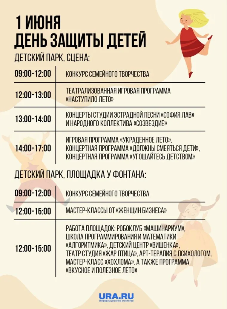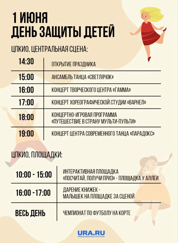 В курганских парках пройдут мероприятия, посвященные Дню защиты детей. Среди них: мастер-классы, танцевальные и музыкальные концерты, а также чемпионат по футболу. Корреспонденты URA.RU подготовили подборку мероприятий, которые можно посетить 1 июня.