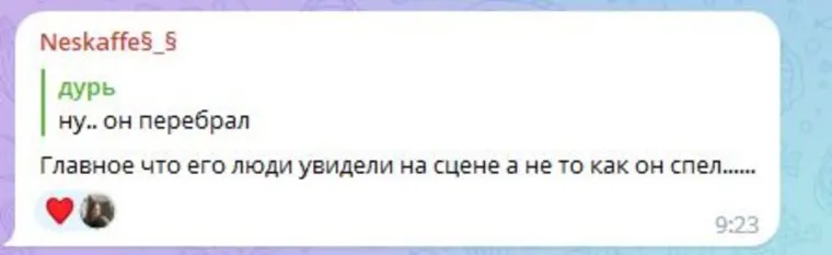 «Заплатила за фанзону и не разочаровалась. Та же история, что и полгода назад, челик (человек — прим. URA.RU) выходит ужратый, потому что находится в х***** (ужасном — прим. URA.RU) психическом состоянии и выступать может либо так, либо никак. Его уже довели однажды, забрасывал свое творчество. Могу понять возмущения, но я очень люблю его и его треки, поэтому была рада просто вновь увидеть на сцене», — написала одна из поклонниц. Другой пользователь соцсетей также отметил: «Главное, что его люди увидели на сцене, а не то, как он спел».