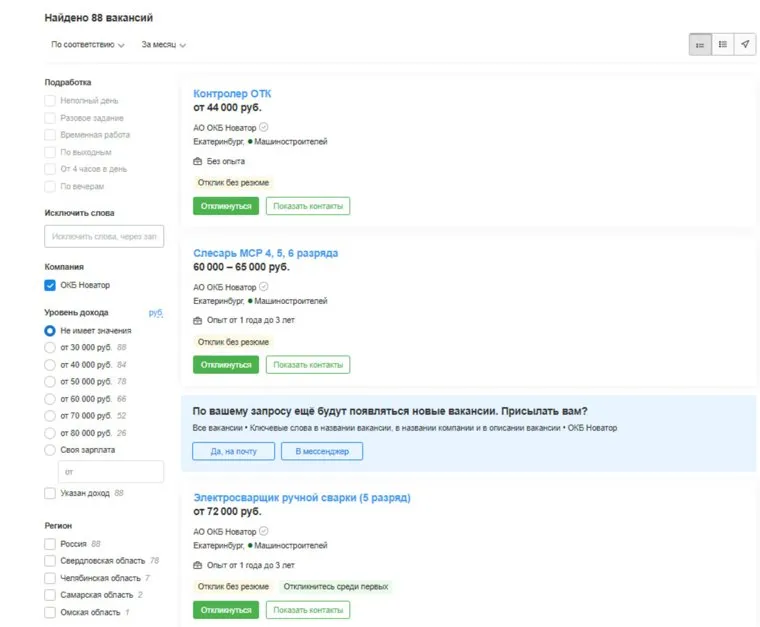 За месяц предприятие опубликовало 88 вакансий, большинство из них — для жителей Свердловской области