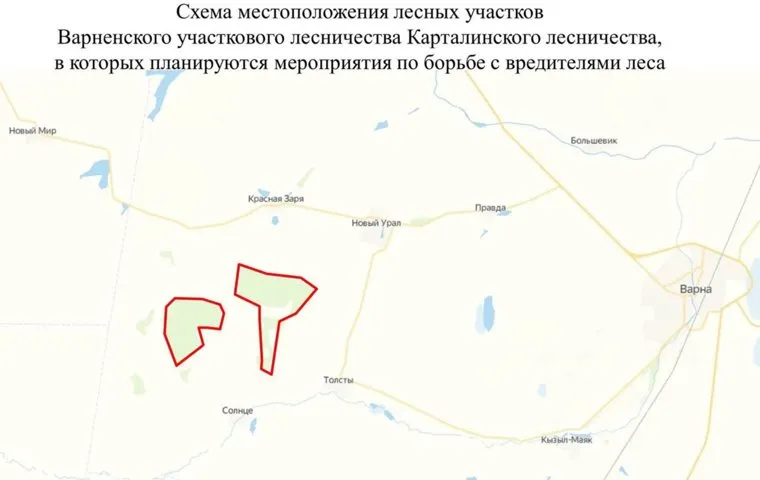 «На территории Варненского участкового лесничества на площади 332,5 га выявлены очаги звездчатого пилильщика-ткача. С 15 по 16 июня лес будет обрабатываться от вредителя. На территории установлен карантин: не рекомендуется сбор грибов, ягод, лекарственных растений», — уточнили в пресс-службе.