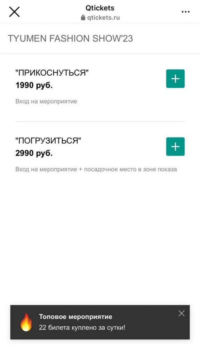 Тюменцы остались недовольны ценовой политикой модного показа «Tyumen Fashion Show`23», где резко подняли цену с 1690 рублей до почти 3000. Об этом URA.RU рассказал собеседник агентства, пожелавший остаться анонимным. По его словам, изменение стоимости произошло без каких-либо предупреждений.