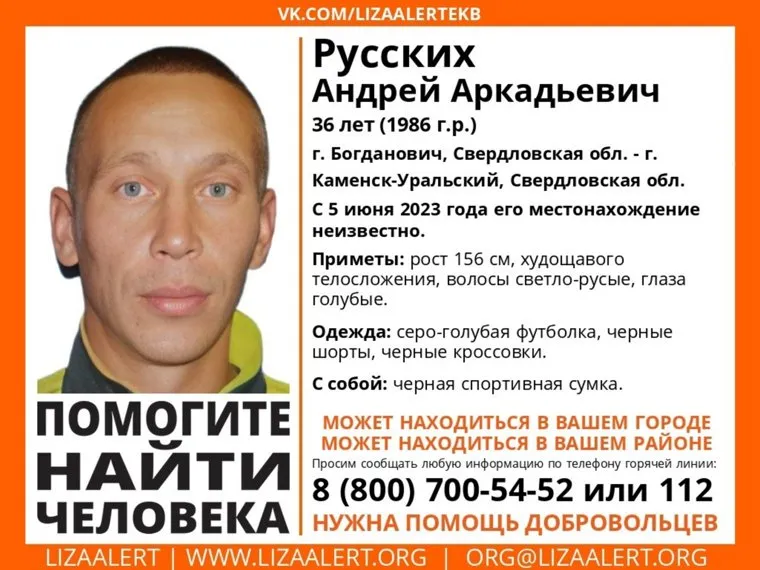 «Помогите найти 36-летнего Андрея Русских! Он может быть в Богдановиче или Каменске-Уральском», — пишут волонтеры в соцсети.