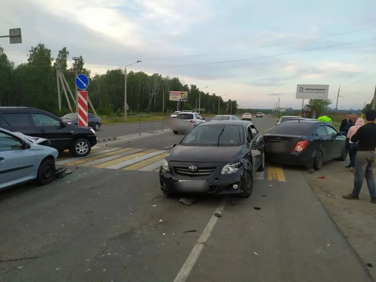 По предварительным данным, 63-летний водитель Volkswagen Tiguan двигался по левой полосе. Навстречу ему по правой стороне ехал автомобиль Chevrolet Aveo. Перед нерегулируемым пешеходным переходом оба водителя сбавили скорость. В это время между ними совершил столкновение автомобиль Toyota Corolla, за рулем которого сидел 22-летний молодой человек. В Toyota Corolla следом въехал Peugeot 206.