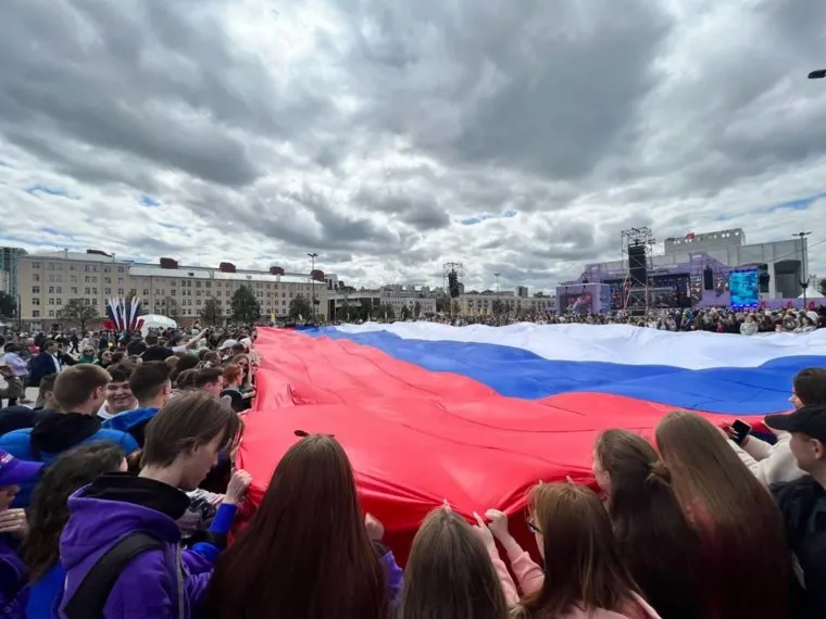16:42 На площади перед Театром-Театром пермяки развернули флаг России размером 30 на 60 метров, сообщает сайт «Единой России».
