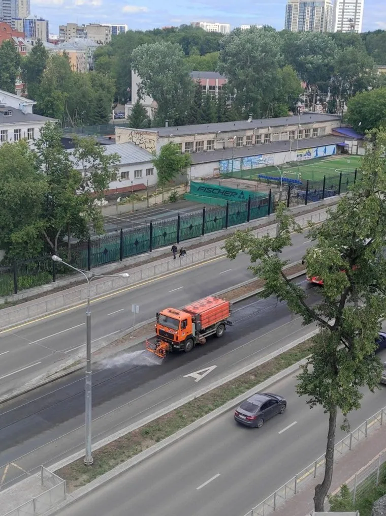 14:30 Далеко не все сегодня отдыхают. Работают, например, водители поливальных машин и рабочие, ремонтирующие крыши.