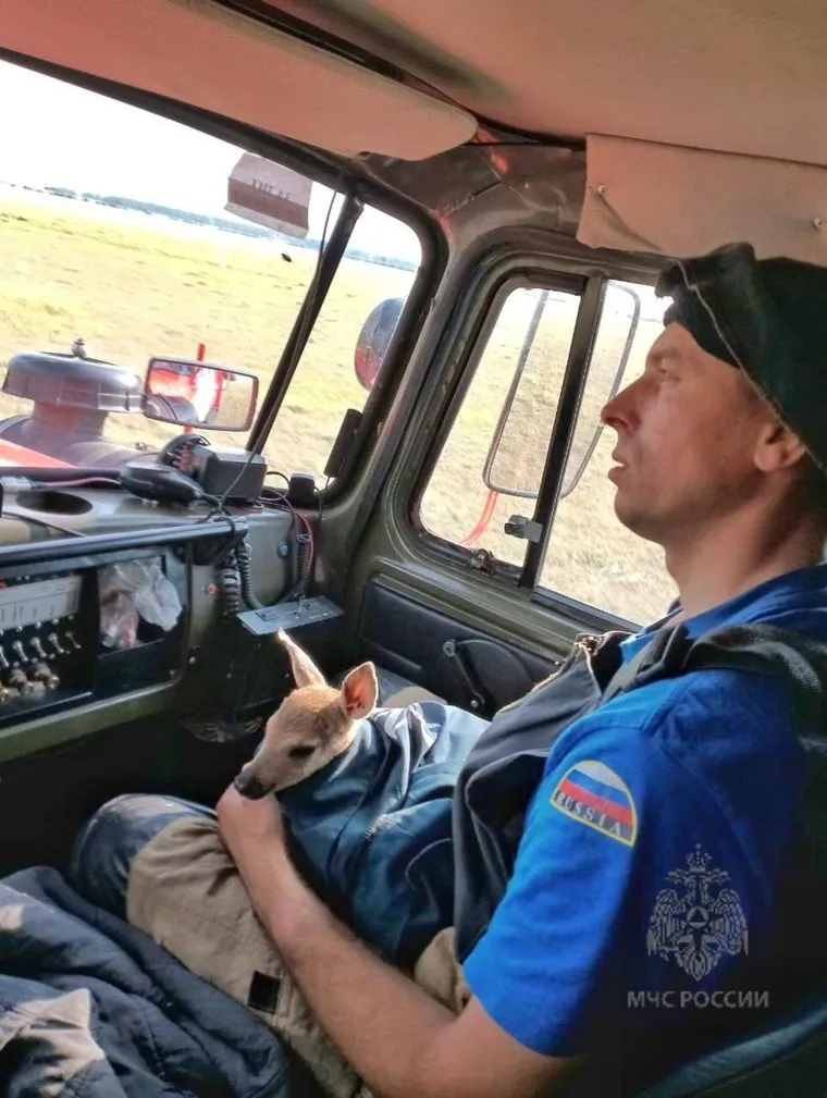 Командир пожарного отделения Александр Суслов назвал детеныша косули «Бемби»