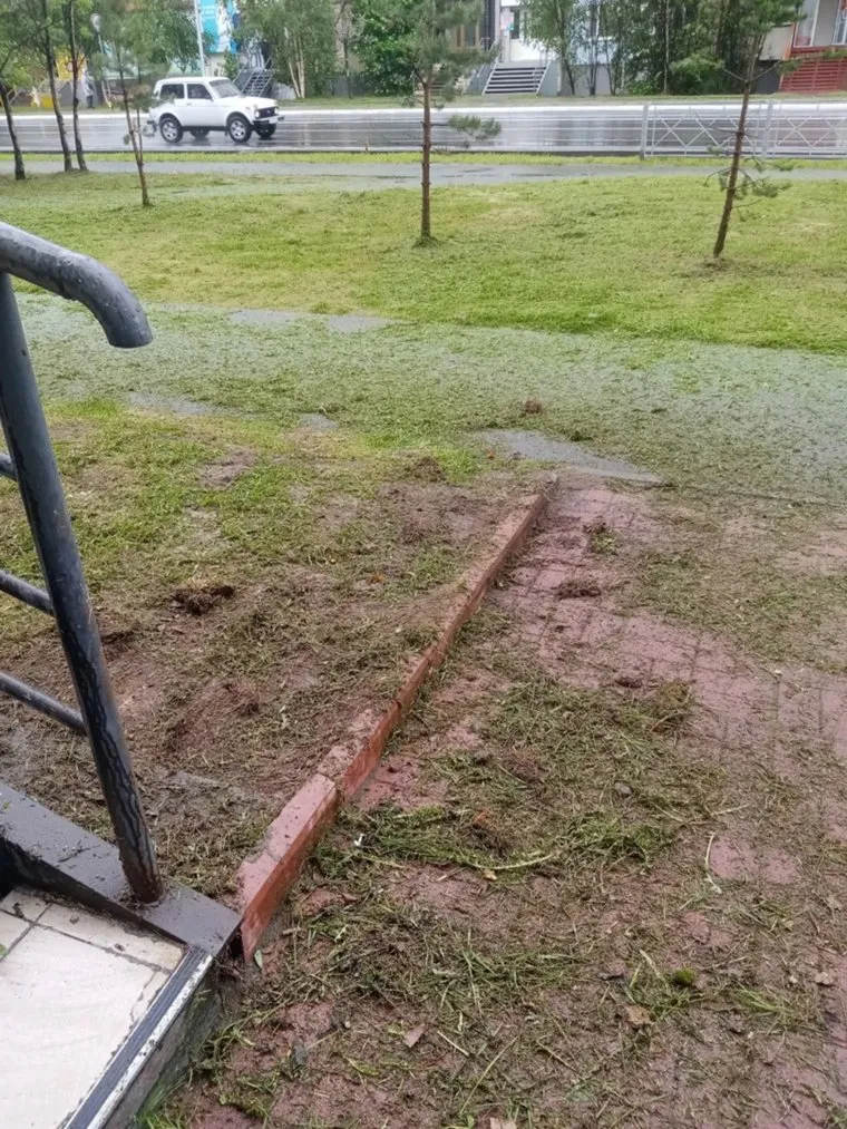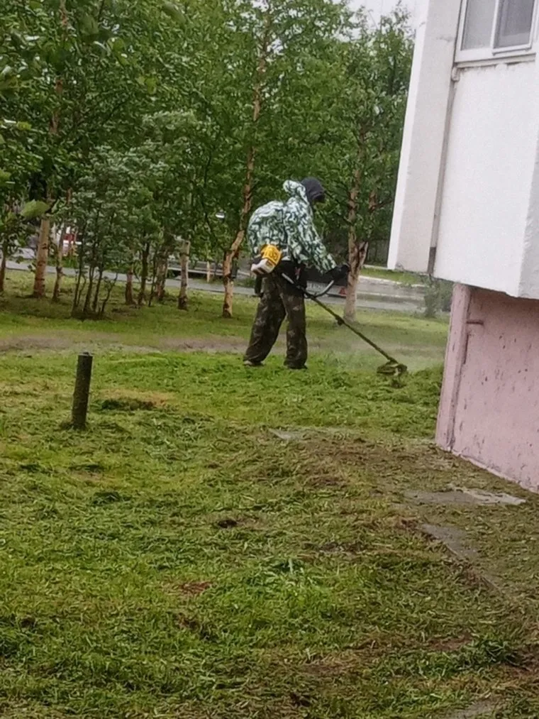 Жителей ЯНАО возмутили коммунальщики, косившие траву в дождь. Фото