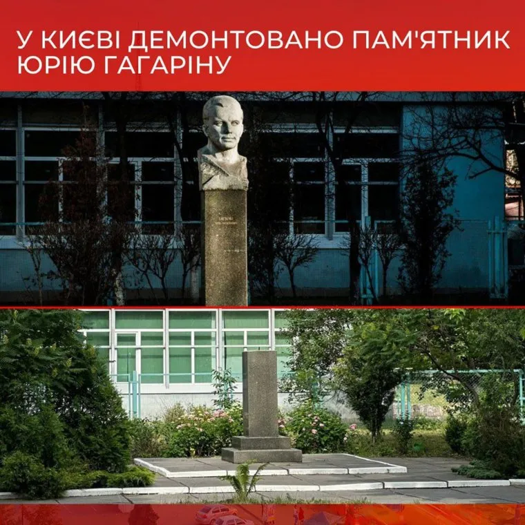«В Киеве демонтирован памятник Юрию Гагарину на улице Пасхалина», — передает telegram-канал «Деколонизация. Украина». Бюст советского космонавта находился на территории Центра технического творчества и профессиональной ориентации школьной молодежи Дарницкого района.