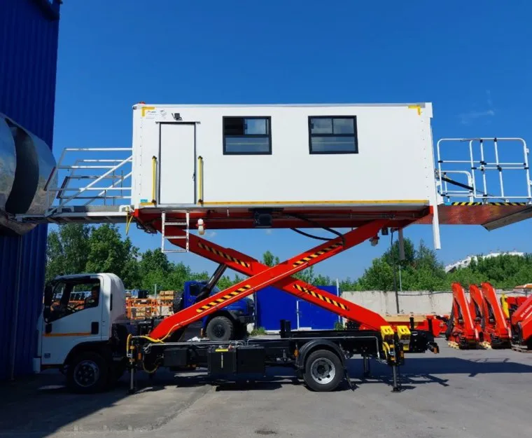Конструкцию составляют шасси, подъемник ножничного типа и фургон