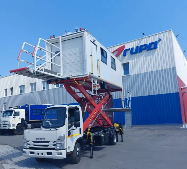 «Для аэропортов республики Коми изготовили и отгрузили два амбулифта на шасси Isuzu. Автомобиль имеет совмещенную конструкцию и может использоваться по двойному назначению», — отметили URA.RU на заводе.