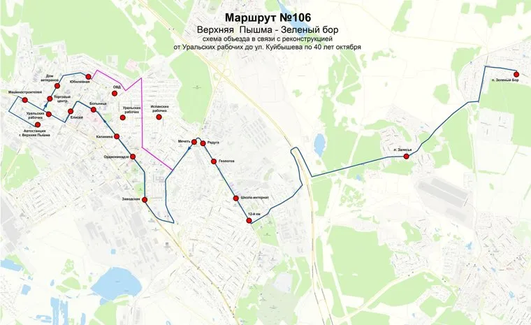 Улицу 40 лет Октября будут реконструировать от Уральских Рабочих до Зеленой и от улицы Зеленая до Куйбышева. Автобусы будут объезжать эти участки дорог.
