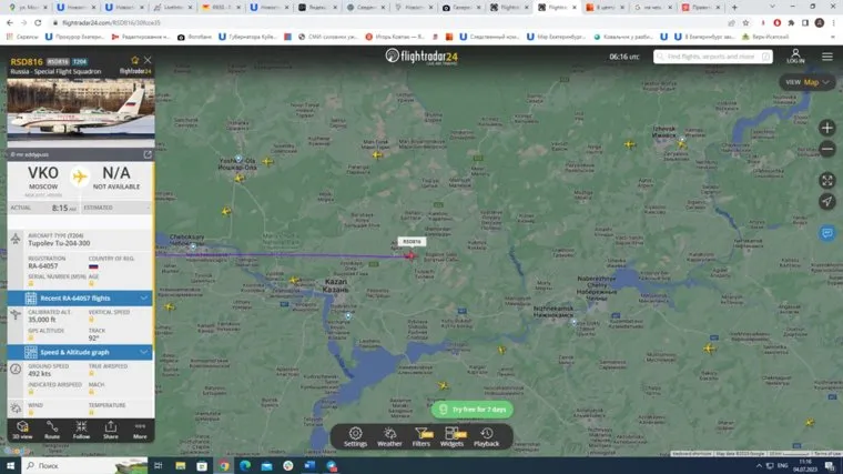 Правительственный борт вылетел из Москвы в 8:15 и направился в Екатеринбург