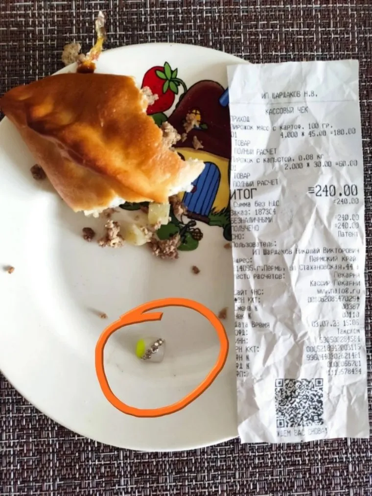 Пермякам в пирожке попался зеленый ноготь. Фото