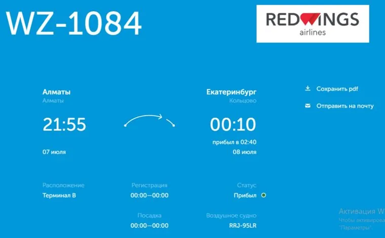 В Казахстане задержали рейс в Екатеринбург на 2,5 часа. Скрин