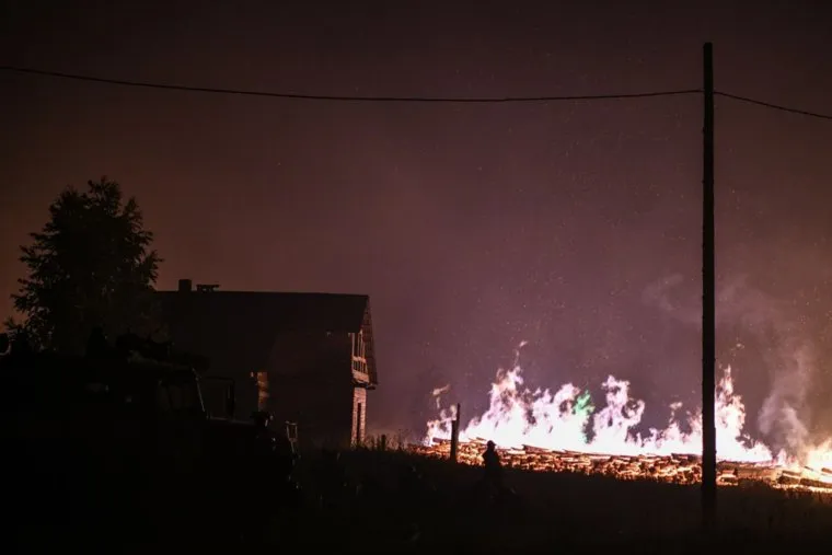 МЧС заявила о локализации огня. На данный момент в селе догорает лесопилка