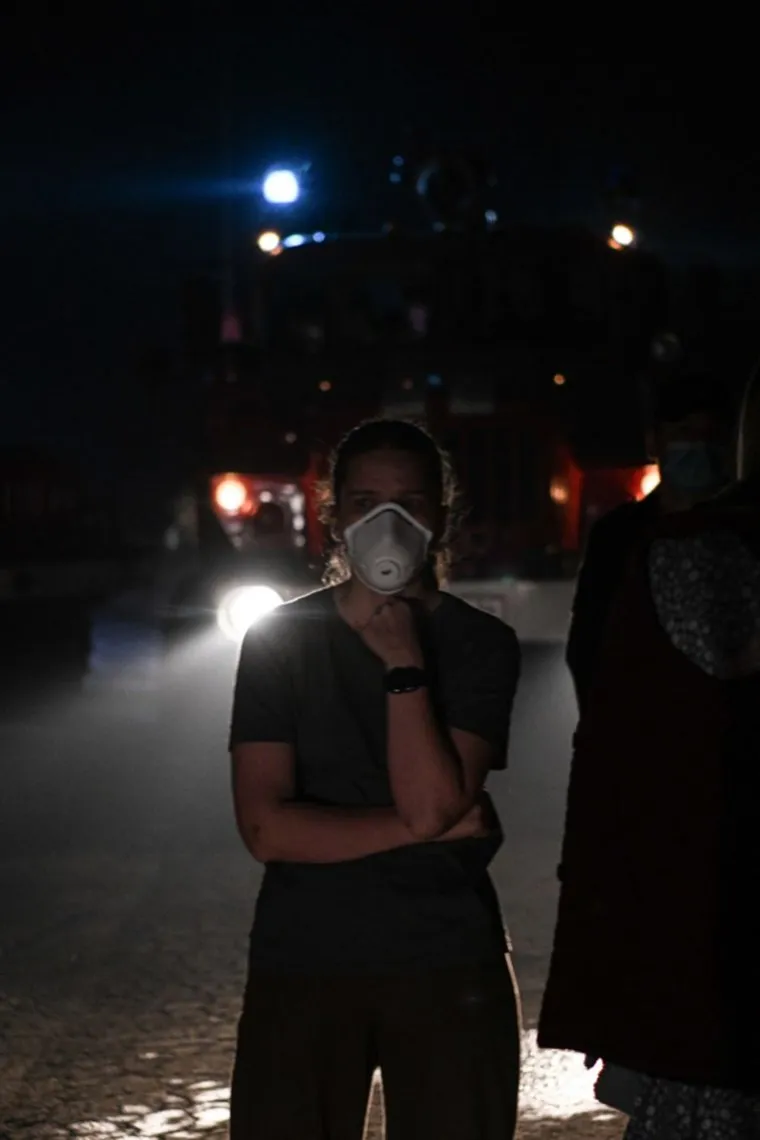 Спасаясь от едкого дыма, некоторые надевают респираторы