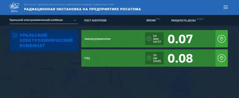 Радиационный фон в Новоуральске, на УЭХК сейчас составляет 0,07 мкЗв/ч