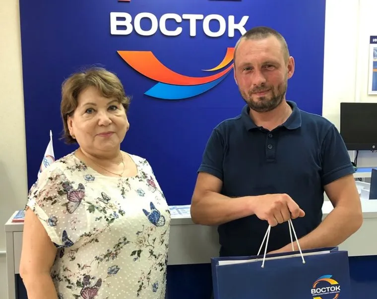 Директор представительства ЭК «Восток» в Тобольске Галина Кирейчик вручила ноутбук победителю