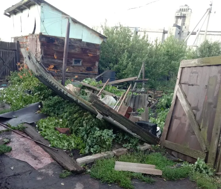 В Половинском округе Курганской области смерч разрушил надворные постройки и повредил дом пенсионерки. Фото разрушений опубликованы в группе «Половинская газета „Вестник района“» в соцсети «ВКонтакте».