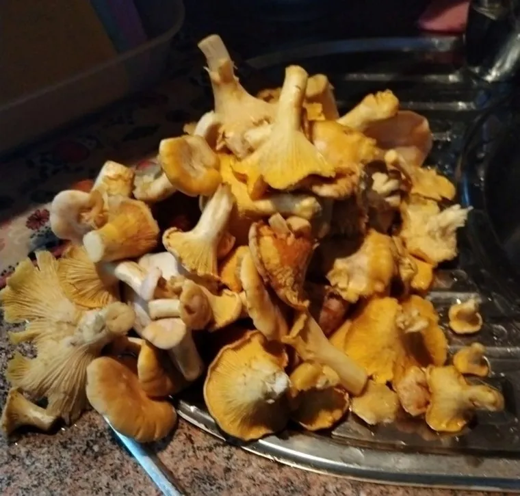 Женщина собрала несколько десятков лисичек