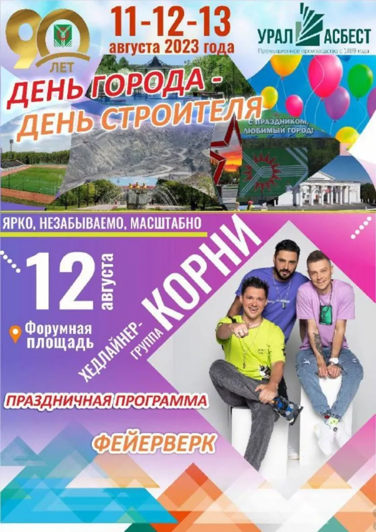 «Мы долго держали имена хедлайнеров, слышали все просьбы асбестовцев, читали комментарии в пабликах. Вечером 12 августа на 90-летии Асбеста выступит группа „Корни“!» — написала Тихонова в telegram-канале. К публикации она прикрепила видео, на котором участники группы приглашают асбестовцев на День города.