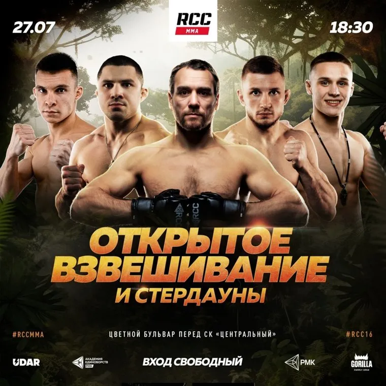 «В 18:30 на Цветном бульваре рядом с „нулевым километром“ (арт-объект напротив тюменского ЦУМа — прим URA.RU) участники предстоящего международного турнира RCC 16 примут участие в официальной церемонии взвешивания и впервые посмотрят друг другу в глаза перед поединками», — рассказали в пресс-службе компании.