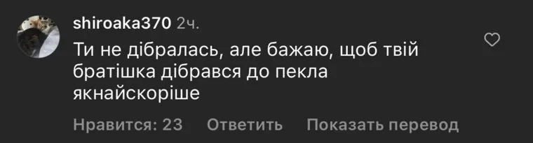 Под постом Смирновой в социальной сети Instagram (запрещена в РФ; принадлежит корпорации Meta, которая признана экстремистской и запрещена в России) появилось множество гневных комментариев. Большинство из них — на украинском языке. Пользователи желают смерти саблистке и ее брату.