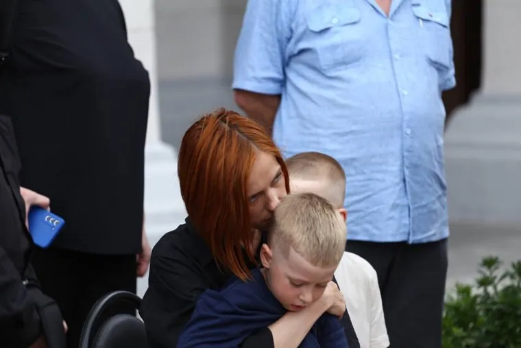 Вдова и двое детей Журавлева попрощались с Ростиславом.