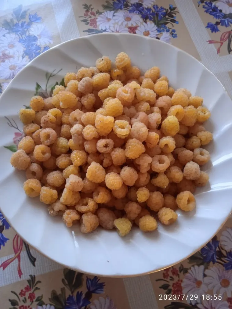 Жительница Челябинской области похвасталась урожаем лесной желтой малины. Фото