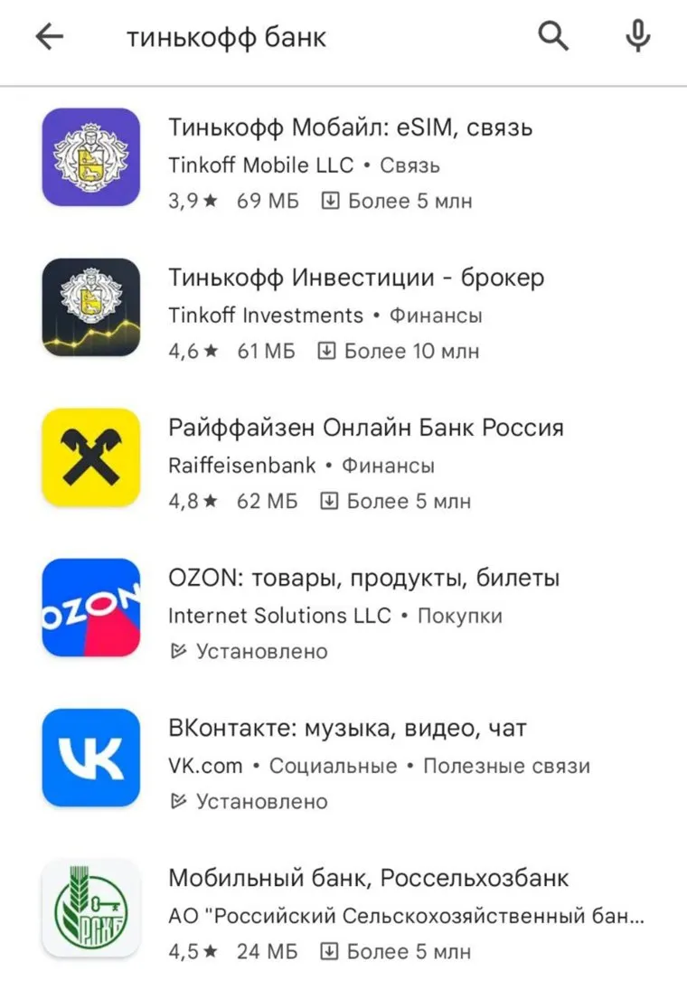 обновлено: В пресс-службе «Тинькофф банка» сообщили, что приложения пропали из-за ограничений Google. Там отметили, что скачанные приложения продолжат работать. Новым клиентам пообещали помочь с установкой, а также посоветовали воспользоваться другими онлайн-магазинами для установки приложения.