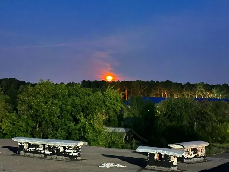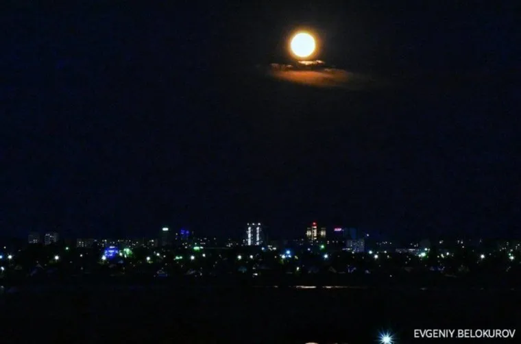 «А вот и „осетровая“ суперлуна над Курганом. Еще есть возможность ею полюбоваться», — передает telegram-канал «Курганистан».