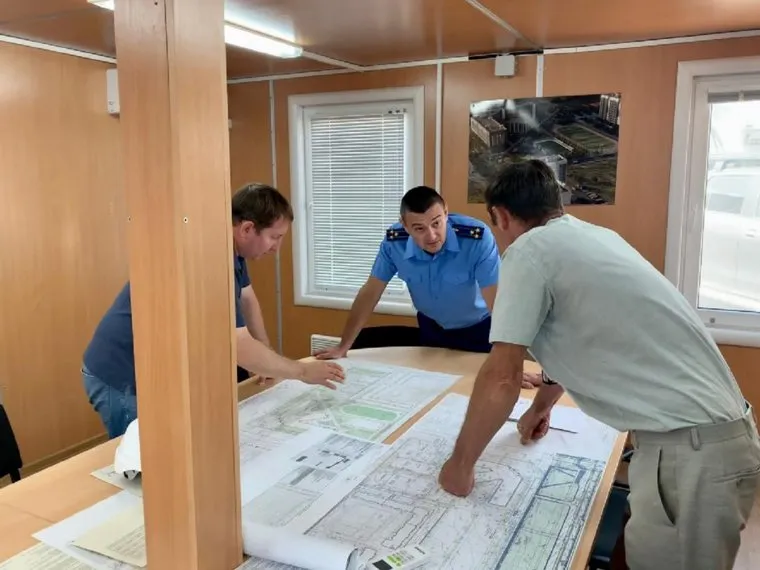 Прокурор Виталий Долгушин и представители заказчика и подрядчика выехали на строительный объект