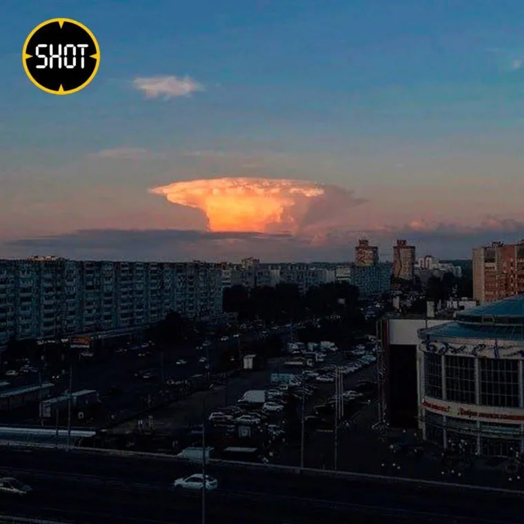 «Облако в виде „ядерного гриба“ напугало жителей Казани сегодня [2 августа] вечером. Многие подумали о взрыве либо мощном пожаре, однако, к счастью, оказалось, что это всего лишь облако-„наковальня“», — сообщили в telegram-канале «Shot».