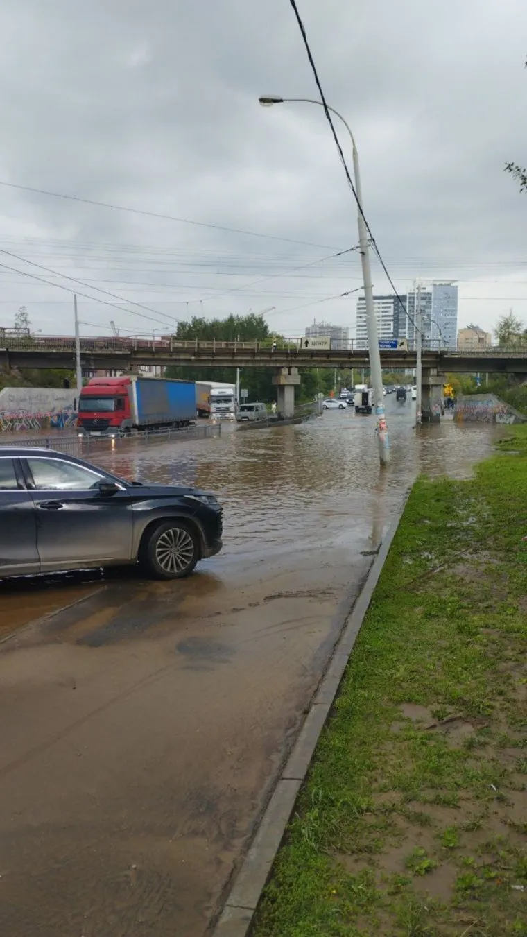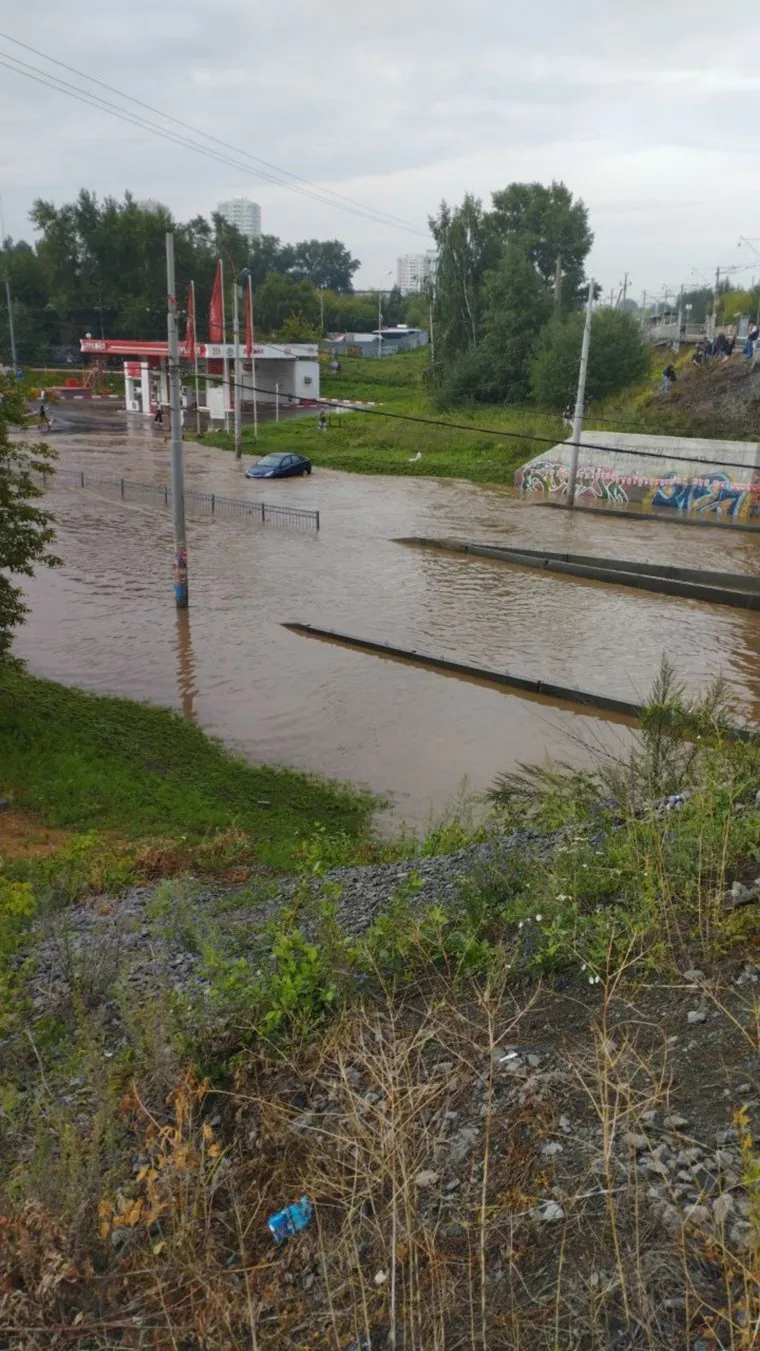 В Екатеринбурге образовалась огромная пробка из-за затопленной улицы. Фото, видео