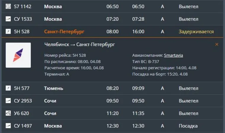 «Рейс авиакомпании „Смартавиа“ в Санкт-Петербург был запланирован на 4 августа в 8:00. По технической причине перевозчик перенес вылет на 16:00», — сообщили в пресс-службе.