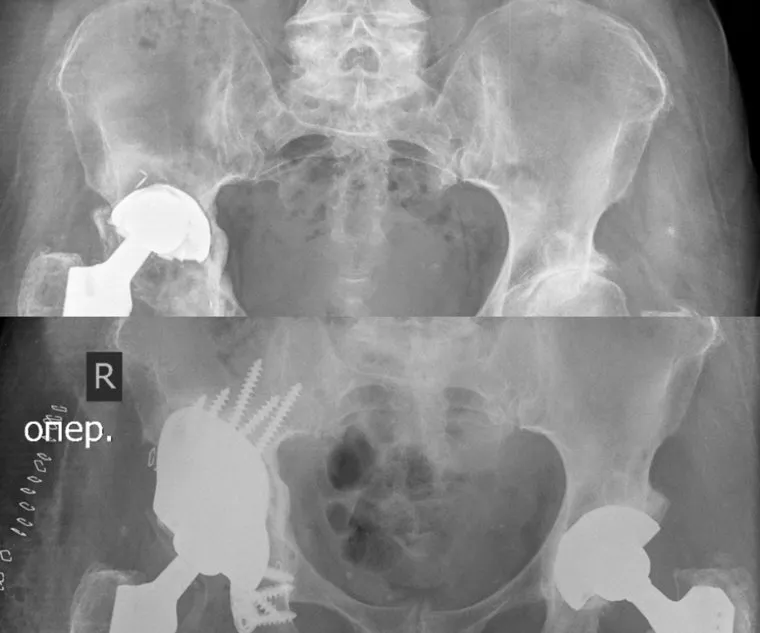 «72-летняя женщина попала в медцентре с нестабильностью эндопротеза. В результате длительно нерешаемой проблемы, у пациента сформировался большой дефект тазовой кости в области вертлужной впадины. Партнерство с инженерами из Новосибирска позволило расширить технологические подходы к данной проблеме. Из титана был напечатан индивидуальный имплантат сложной формы для будущего эндопротеза тазобедренного сустава», — написано в группе «НМИЦ ТО им. акад. Г.А. Илизарова Минздрава РФ» в соцсети «ВКонтакте». Операция длилась четыре часа.