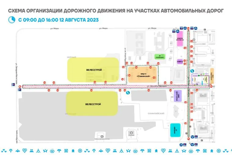 «Будут закрыты для движения автотранспорта 12 августа с 09:00 до 16:00 участки дорог: по улице Дружбы Народов от пересечения с улицей Западная магистраль до дома 3 мкр. Советский; по улице 70-летия Октября от пересечения с улицей Мира до пересечения с улицей Подшибякина. Автобусное движение будет организовано по соседним участкам», — сообщает пресс-служба мэрии Нового Уренгоя в официальном telegram-канале.