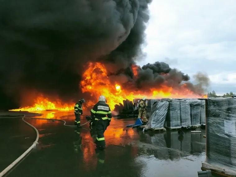 Площадь пожара на складе в Раменском выросла до 1,8 тысяч квадратных метров. Фото