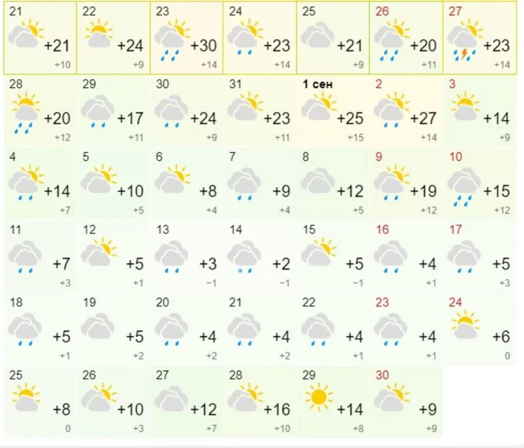 По данным портала, в последующие дни сохранится прохладная погода. 14 сентября ожидается снег с дождем. Тепло вернется 28 сентября, воздух прогреется до 16 градусов тепла.
