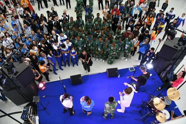 За большое театрализованное представление отвечал режиссер, известный фигурист Илья Авербух. Шоу открыла постановка «Почувствуй ритм» от Уральского молодежного симфонического оркестра, группы «Чувство ритма» и хип-хоп студии «Форсаж». Потом на сцену ведущие Роман Дорохин (замминистра культуры, к своему первому международному форуму готовился несколько суток) и Джулия Игнатова пригласили команды-участницы МФУС. В зале шептались: флаг был у всех, кроме Афганистана, спортсмен оттуда вышел с символикой фестиваля. Дело в том, что контролирующий страну «Талибан» признан в РФ террористической организацией.