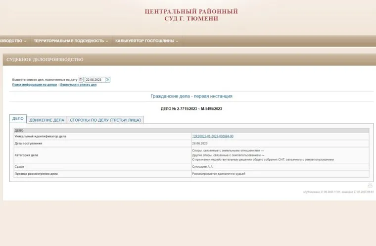 Фото: Скрин — сайт центрального районного суда г. Тюмени