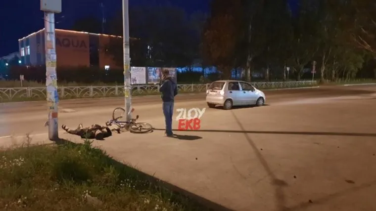 В Екатеринбурге водитель Daewoo Matiz сбил мужчину на велосипеде, который ехал на большой скорости. Очевидец предполагает, что после ДТП у потерпевшего сотрясение мозга и перелом ключицы.