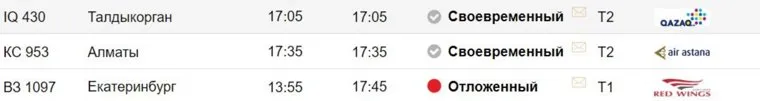 Фото: Скриншот с онлайн-табло аэропорта Нурсултан Назарбаев (https://www.nn-airport.kz/flight-status)