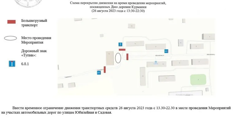 Схема перекрытия движения транспорта в Курманке 26 августа